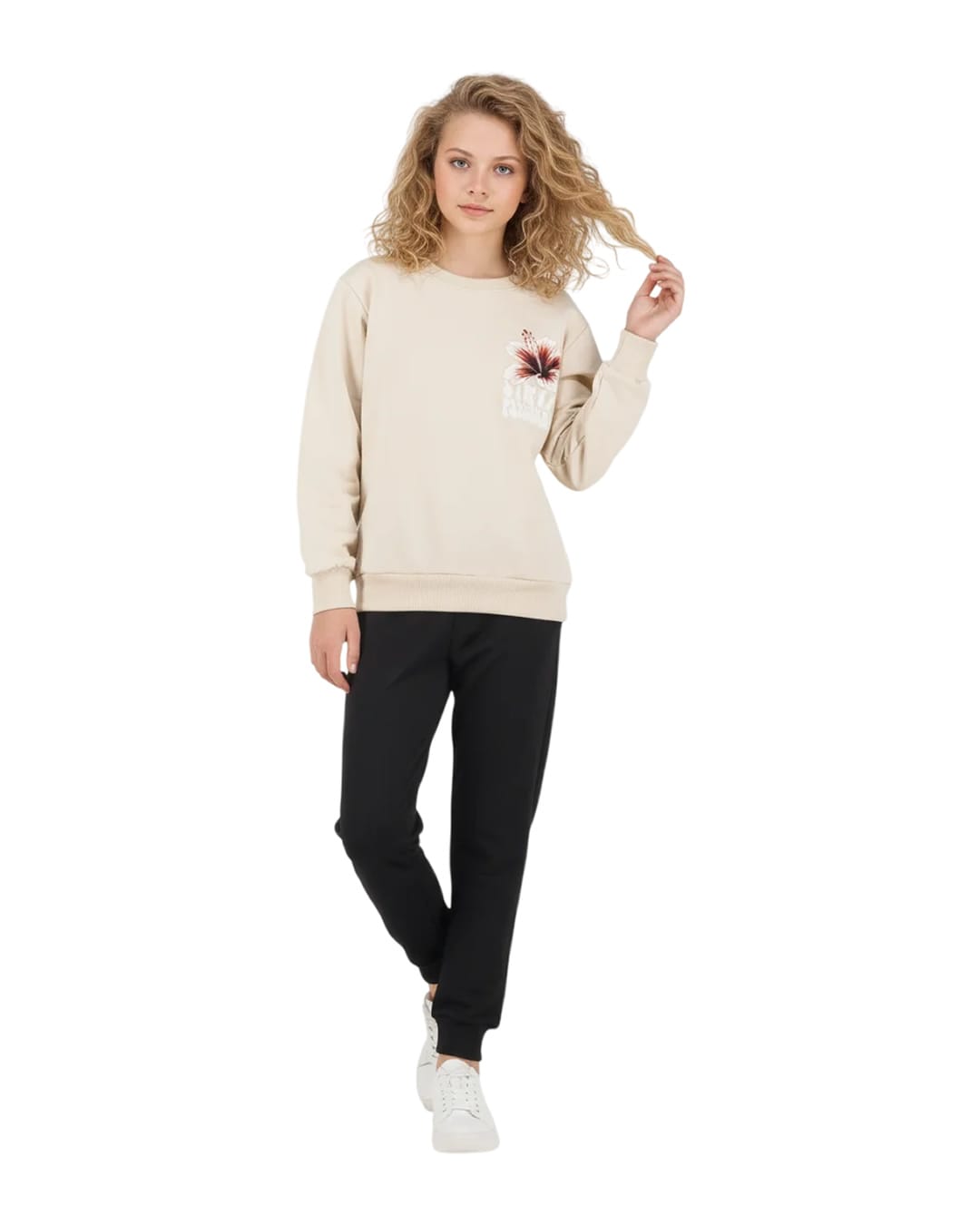 Παιδικό σετ φόρμας αχνούδιαστο μπεζ-μαύρο Simple pleasures