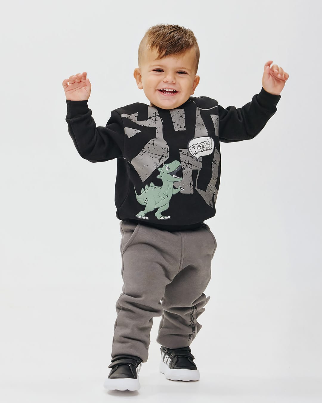 - μπλούζα μαύρη fleece με τύπωμα Dino