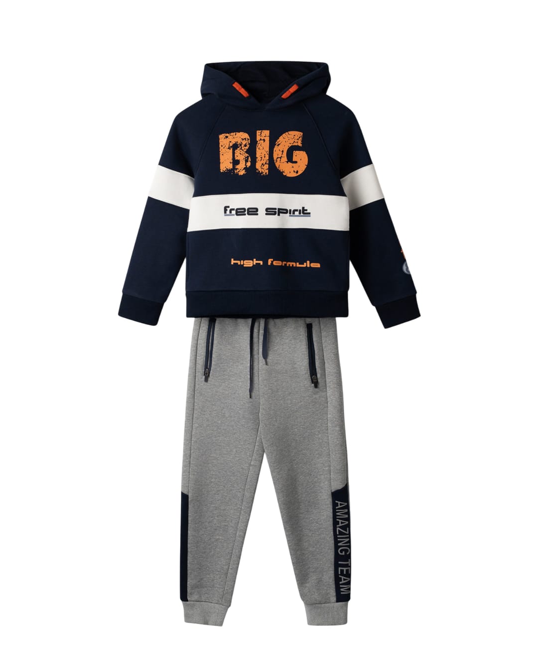 Σετ φόρμας για αγόρι fleece γκρι-μαύρο με ανάγλυφο τύπωμα