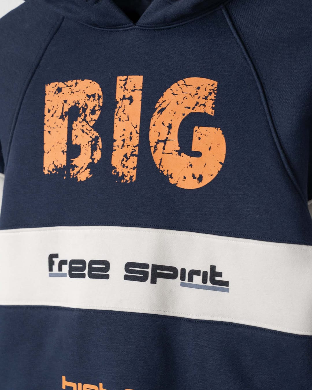 - μπλούζα fleece μπλε-λευκό με τύπωμα στην εμπρός και πίσω πλευρά , κουκούλα και τσέπες