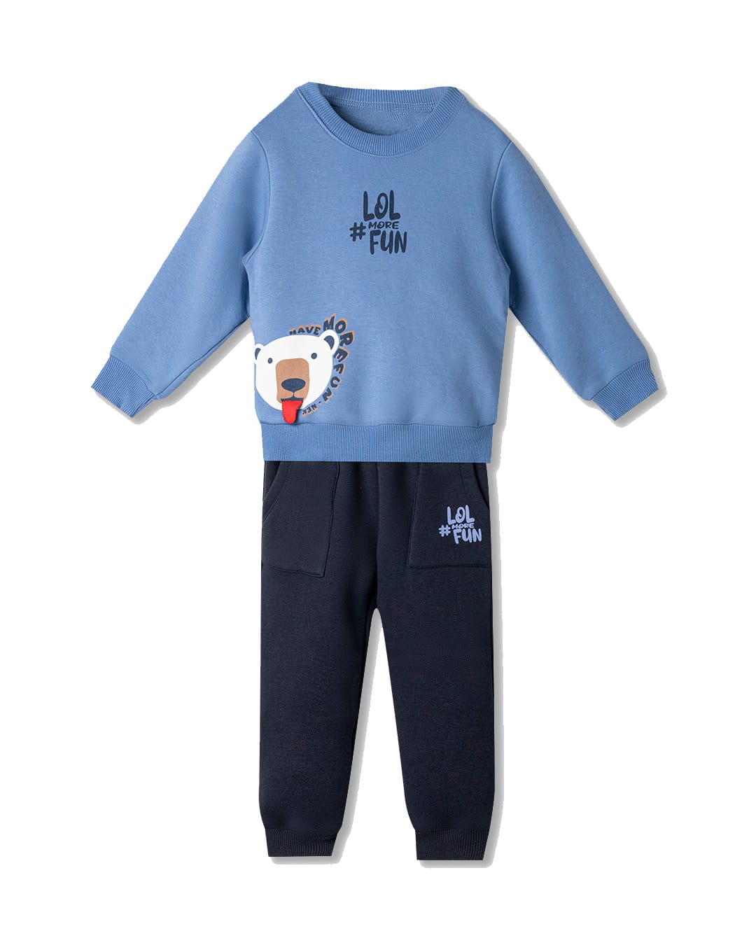 Παιδικό σετ φόρμας fleece μπλε-λευκό-γκρι