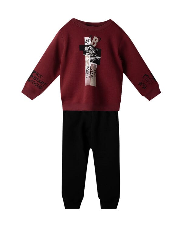 Παιδικό σετ φόρμας fleece μπορντώ-μαύρο
