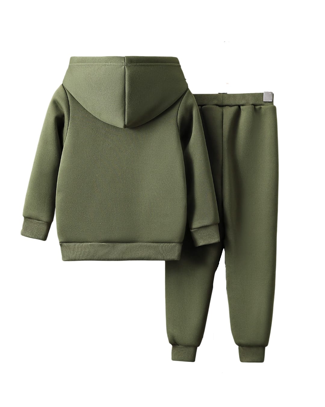 Παιδικό σετ φόρμας fleece μαύρο με γραμματάκια και κουκούλα