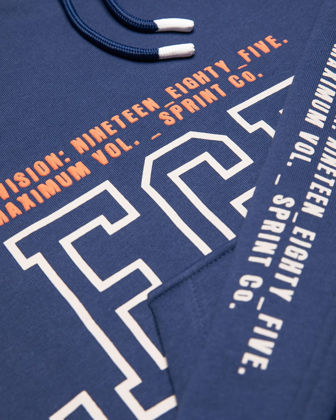 - μπλούζα fleece μπλε σκούρη με τύπωμα Legend, τσέπη στο μπροστινό μέρος και κουκούλα