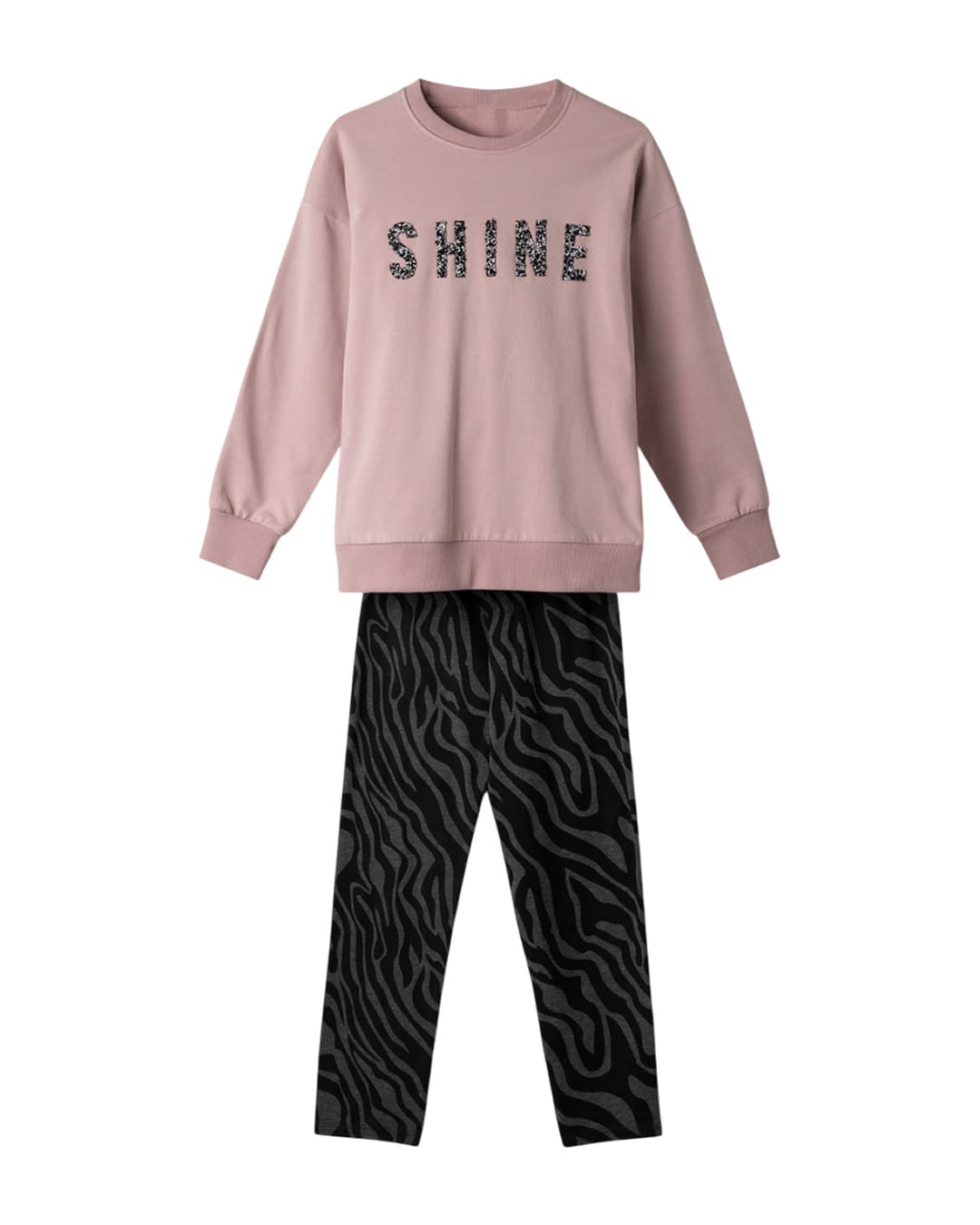 Σετ φόρμας ροζ κουφετί με κέντημα στη ζακέτα