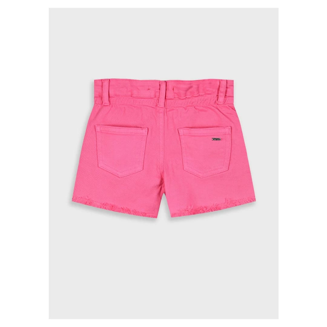 Παιδικό σορτς για κορίτσι έντονο ροζ (της Barbie) τζιν με κροσσάκια στο τελείωμα.