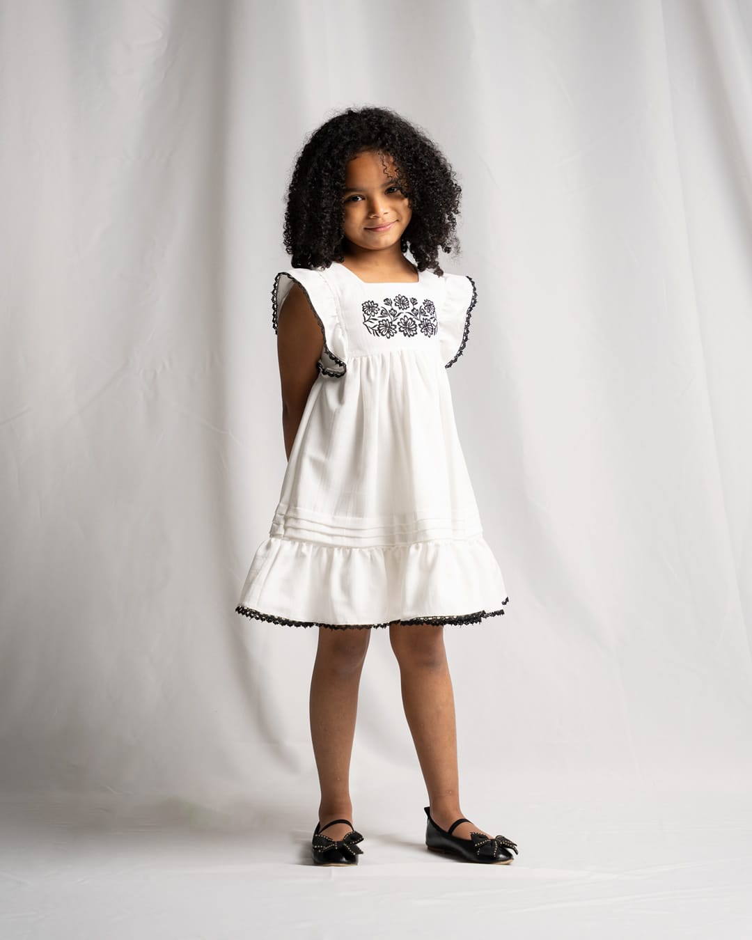 Φόρεμα μαύρο-ζαχαρί με πέρλες στους ώμους