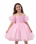 Φόρεμα ροζ με εντυπωσιακό τούλι με ασημί αστεράκια