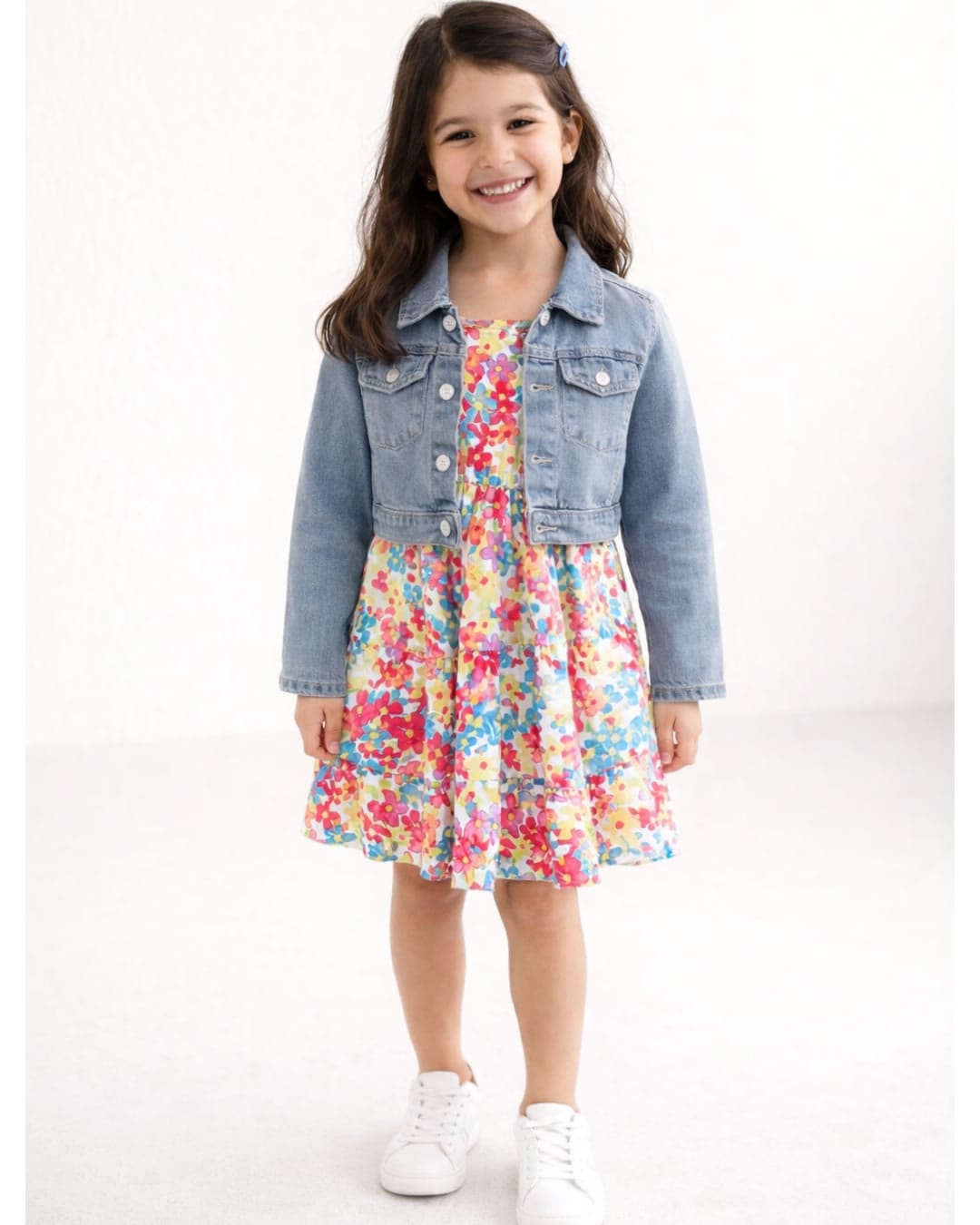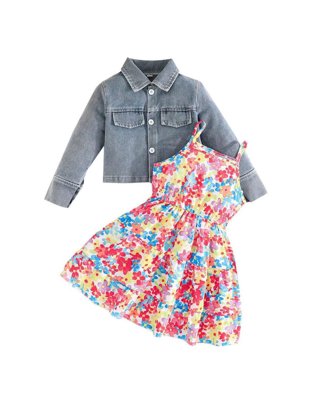 Περιλαμβάνει φόρεμα floral με τιραντούλες και τζιν μπολερό