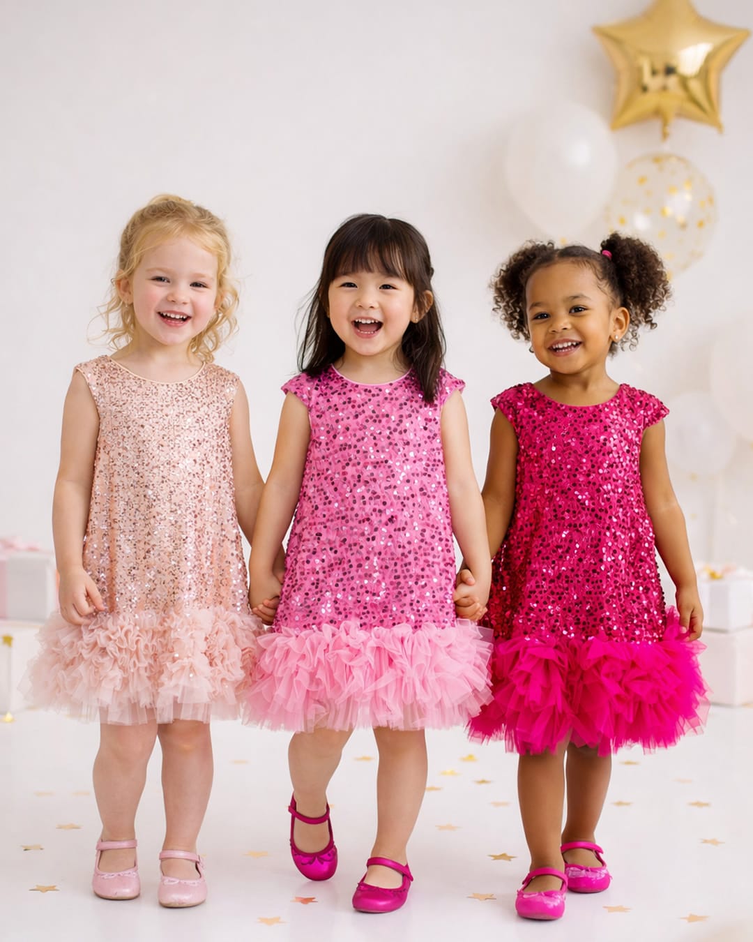 Φόρεμα ροζ με παγιέτες και τούλι