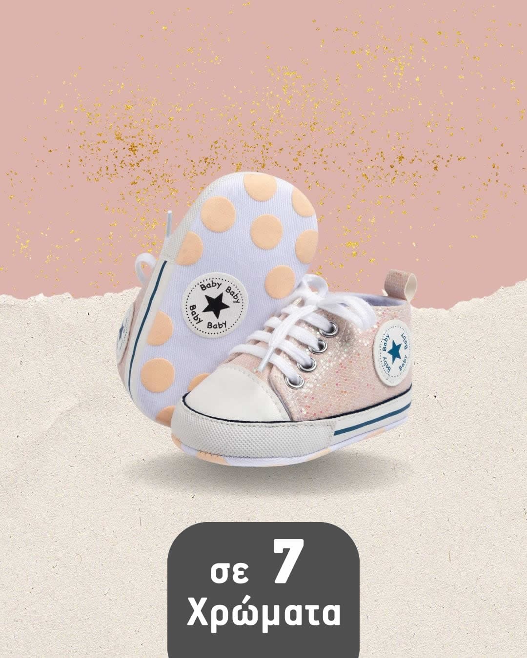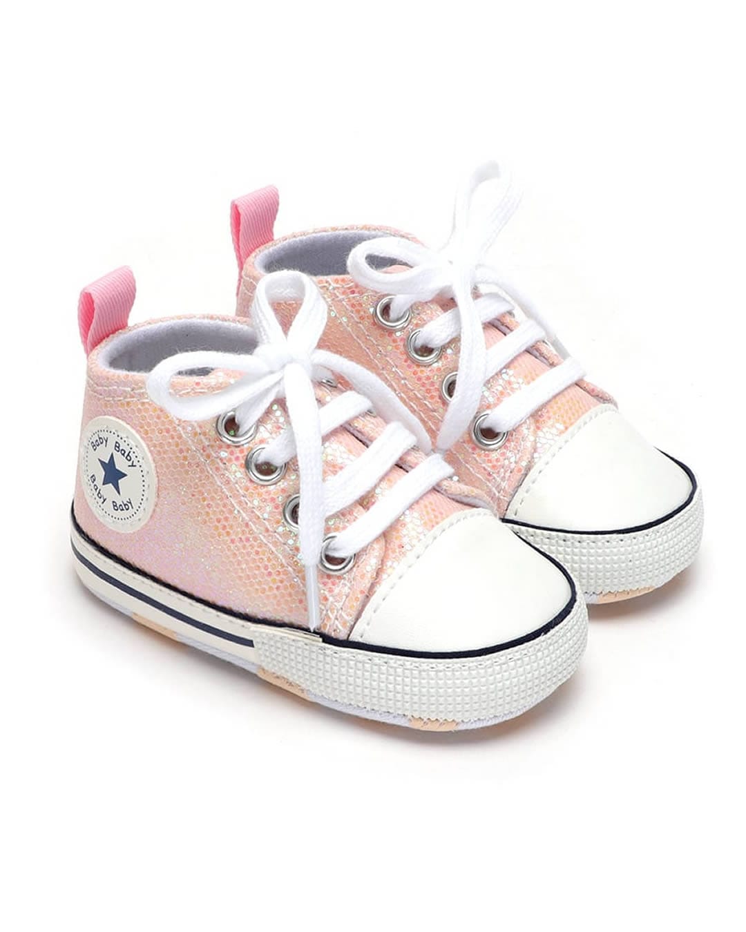 Παπουτσάκια αγκαλιάς τύπου σταράκια glitter ροζ απαλό