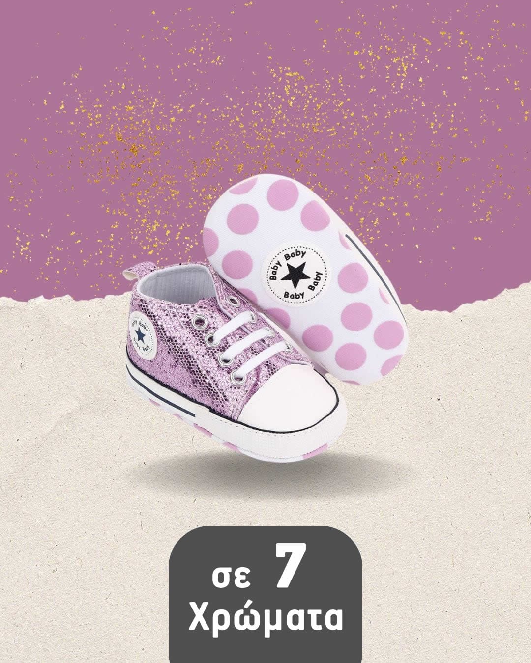 Παπουτσάκια αγκαλιάς τύπου σταράκια glitter λιλά