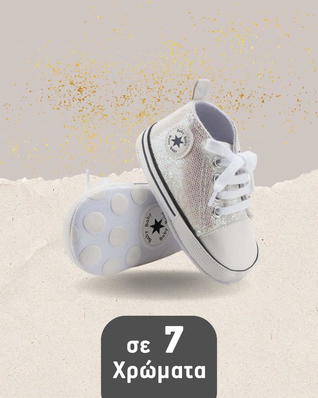 Παπουτσάκια αγκαλιάς τύπου σταράκια glitter λευκό ιριδίζον