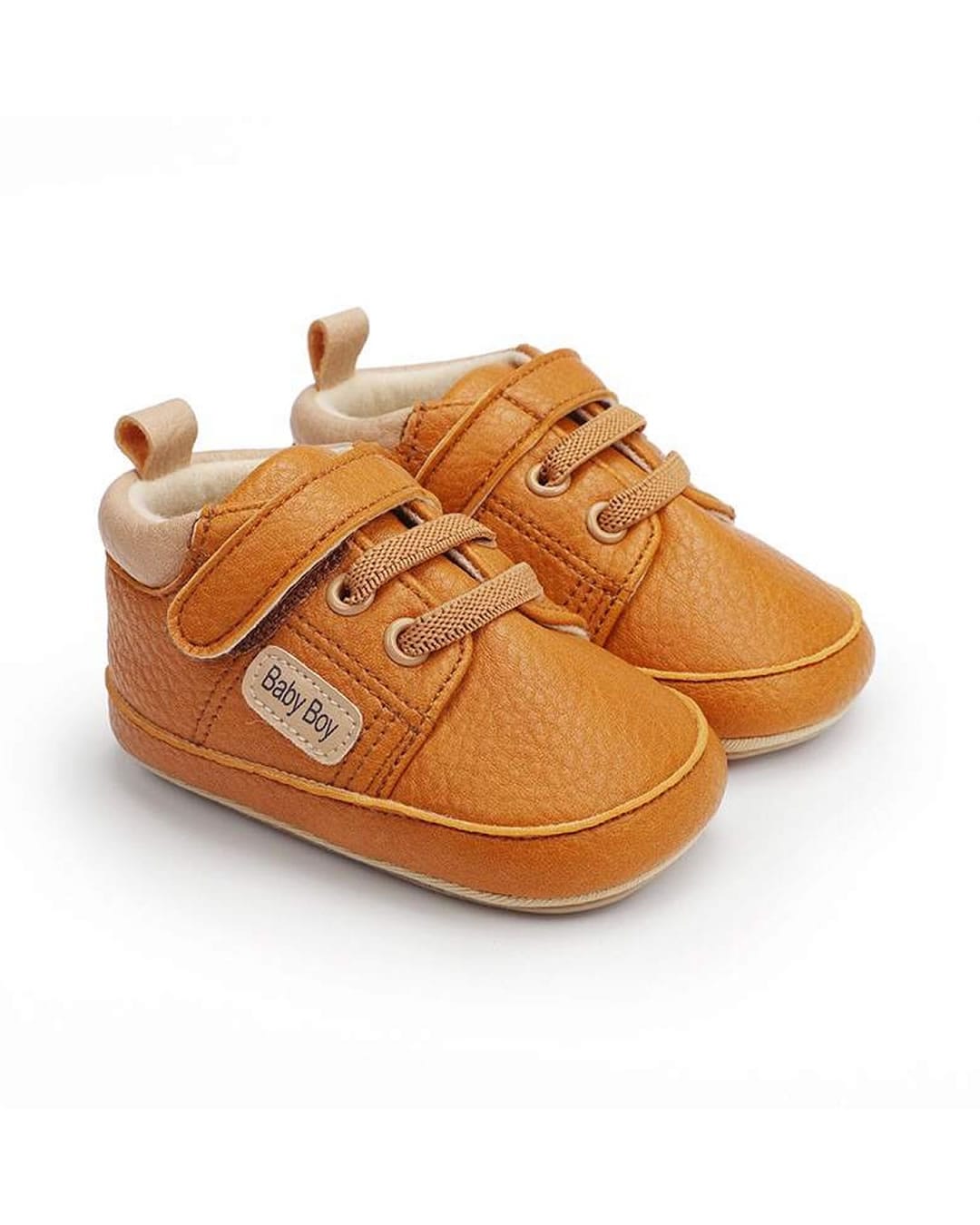 Παπουτσάκια τύπου sneakers καφέ με χρατς, κορδονάκια και μπεζ λεπτομέρεια στο πίσω μέρος. Ιδανικά ακόμη και για τα πρώτα βήματα καθώς διαθέτουν μαλακή σόλα από καουτσούκ.