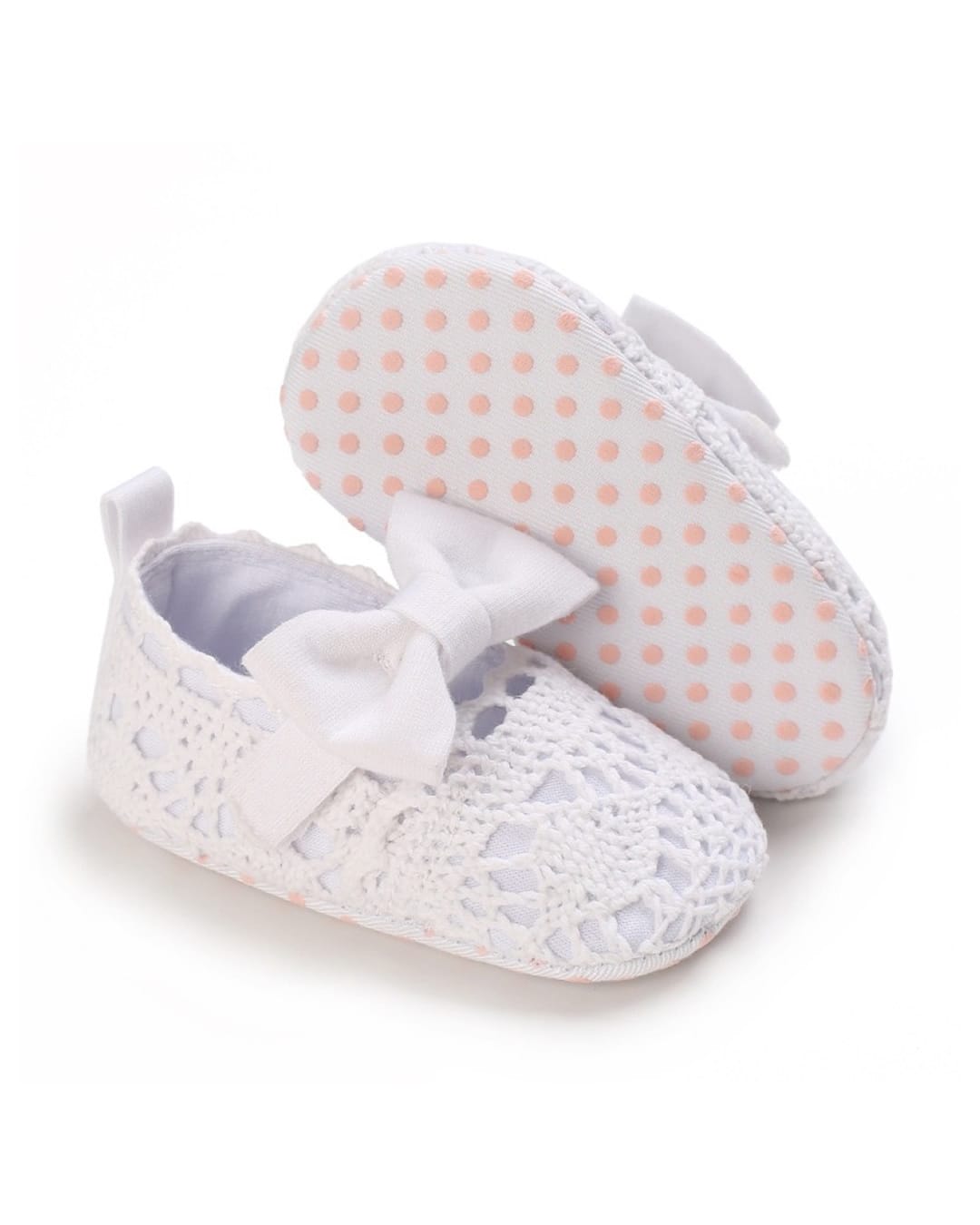 Παπούτσια αγκαλιάς τύπου εσπαντρίγιες λευκές με πλέξη και φιόγκο.