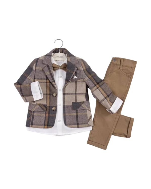 Παιδικό κοστούμι σε λαδί αποχρώσεις με καρό σακάκι