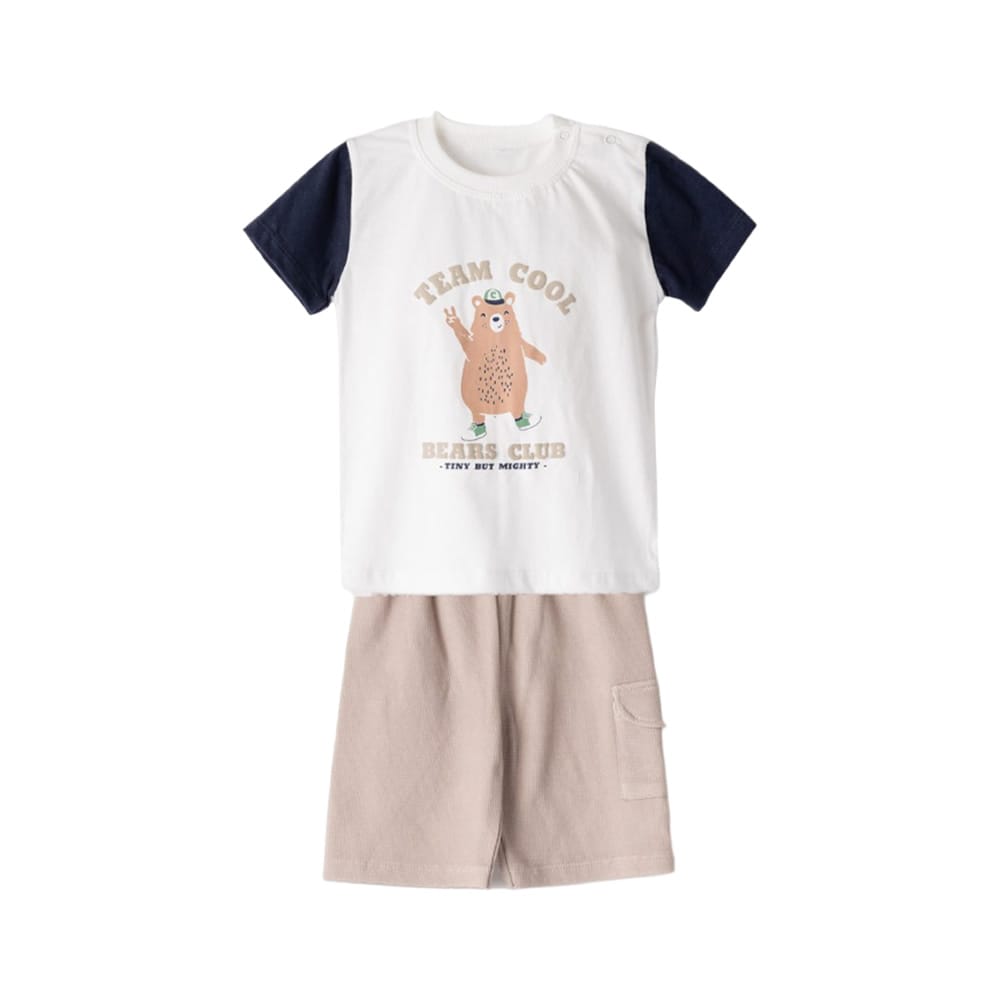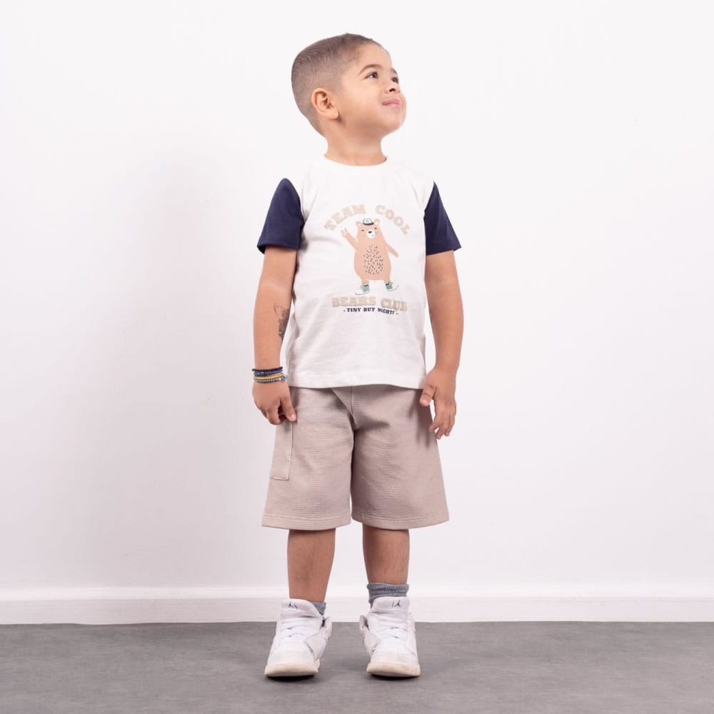 Σετ – Μπλούζα λευκή με δεινοσαύρους και σορτς μπεζ με ζώνη