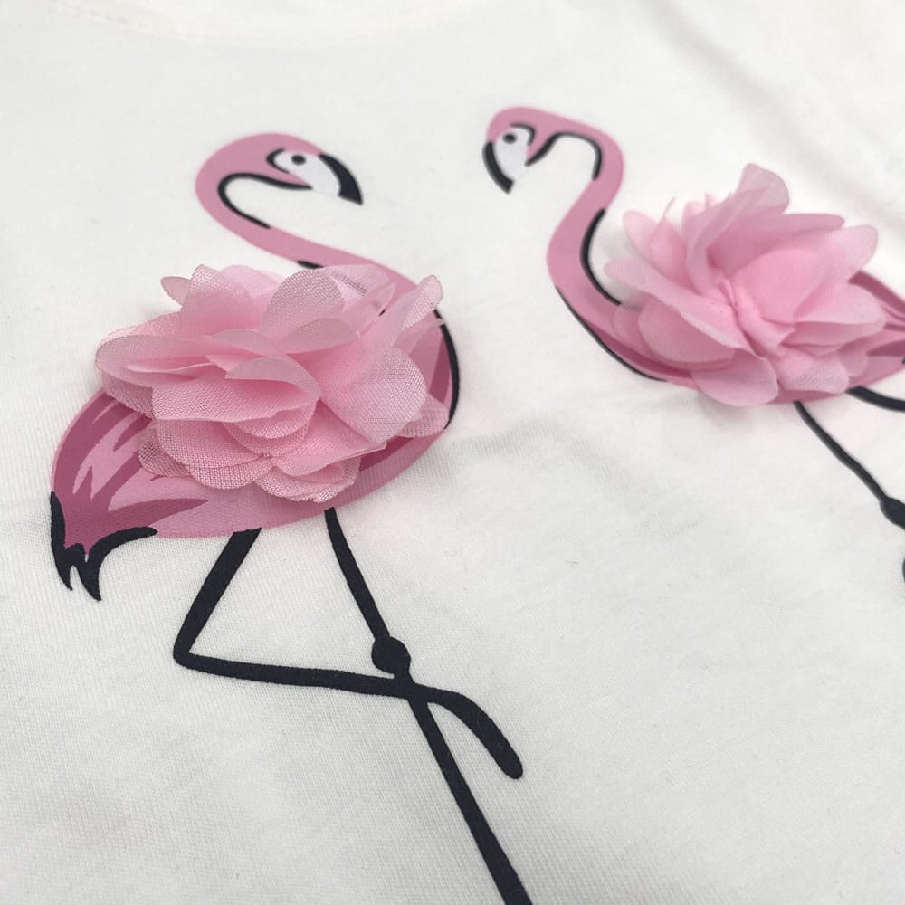 - μπλούζα λευκή με Flamingo και 3D λουλούδια