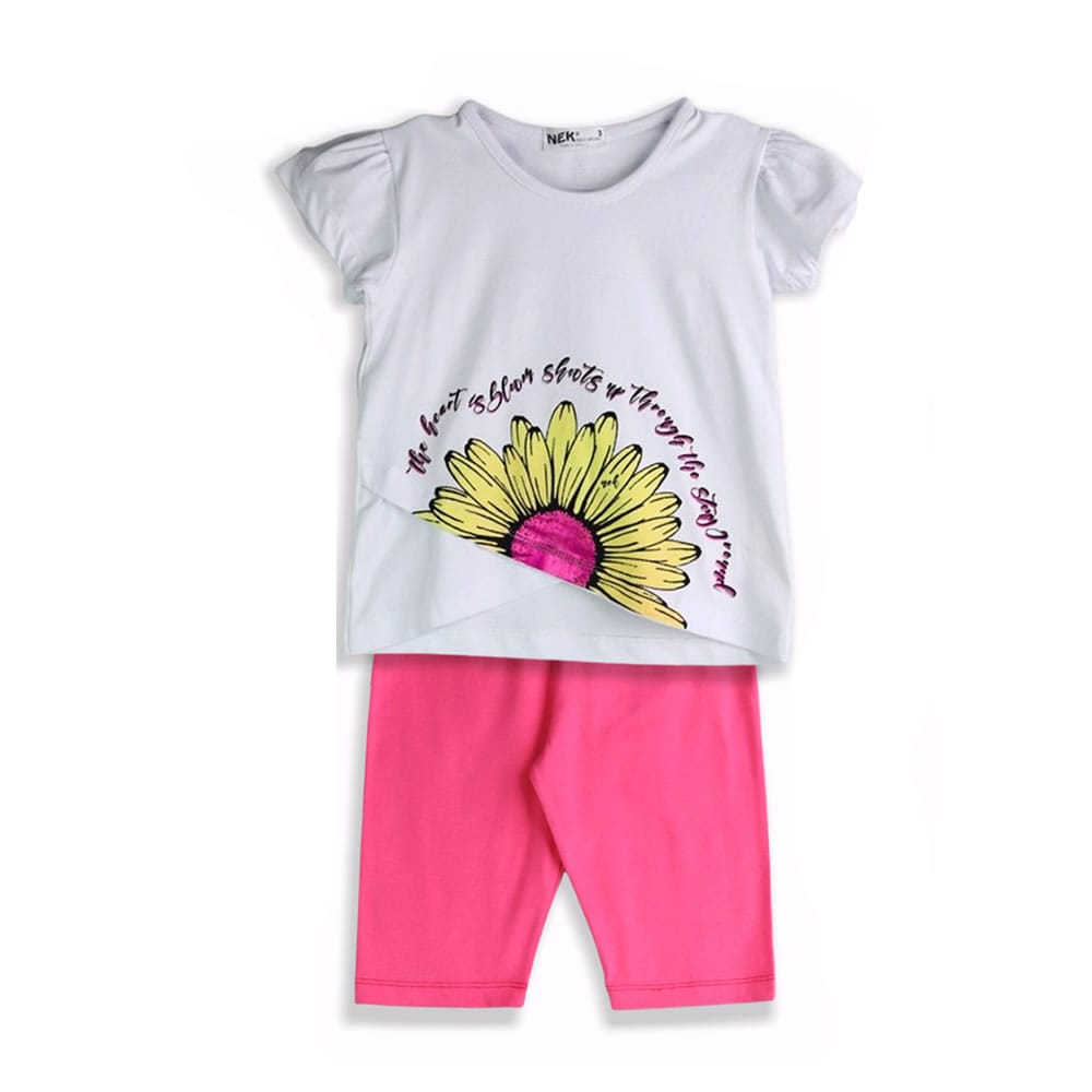 μπλούζα λευκή κοντομάνικη με μαργαρίτα με μεταλιζέ λεπτομέρεια και ιδιαίτερο κόψιμο
