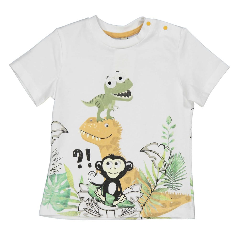 - μπλούζα λευκή κοντομάνικη με μαϊμουδάκι και δεινοσαυράκια
