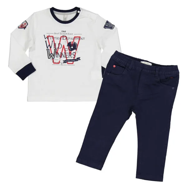 Σετ – Μπλούζα λευκή W και παντελόνι μπλε σκούρο