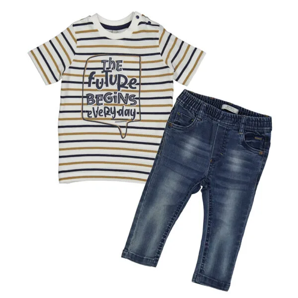 Σετ – Μπλούζα μπλε-καφέ ριγέ The Future Begins Every Day και παντελόνι τζιν
