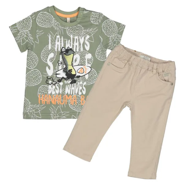 Σετ – Μπλούζα λαδί με βάτραχο και παντελόνι μπεζ