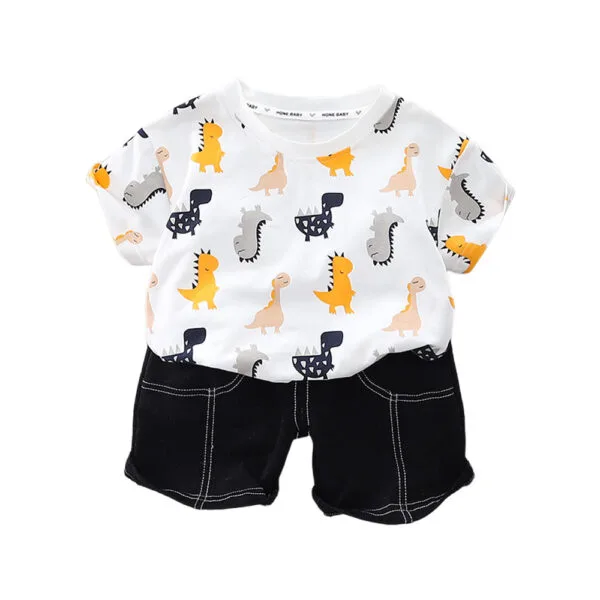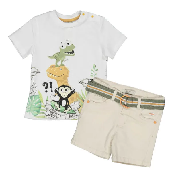 Σετ – Μπλούζα λευκή με δεινοσαύρους και σορτς μπεζ με ζώνη