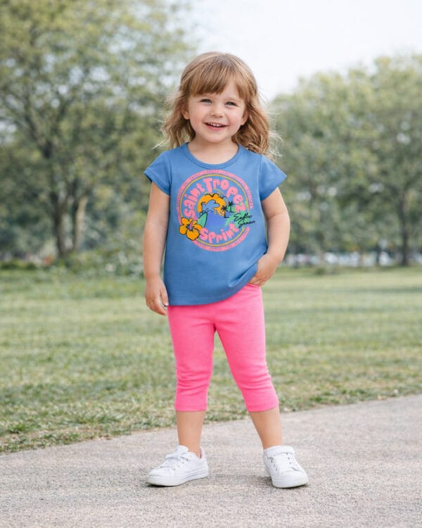 Παιδικό σετ για κορίτσι γαλάζιο-ροζ fluo με κολάν capri