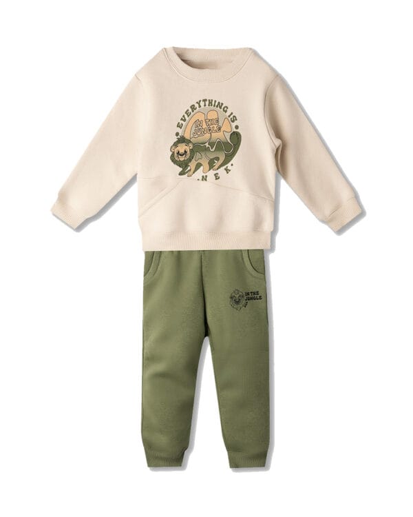 Παιδικό σετ φόρμας fleece μπεζ-ελιάς Λιονταράκι