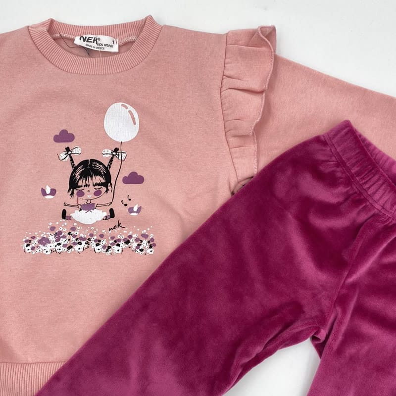 Σετ φόρμας μαύρο-μπεζ βελουτέ με ελαφάκι