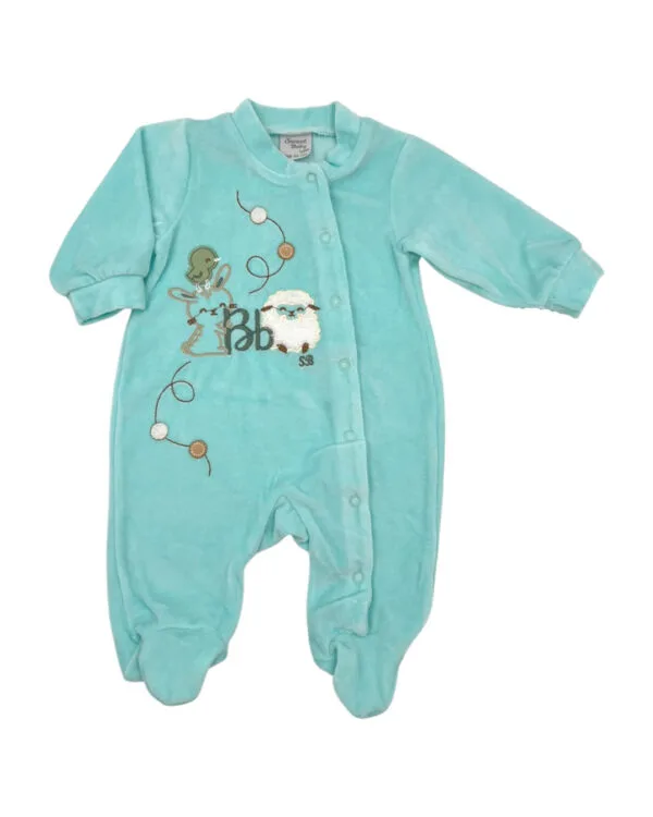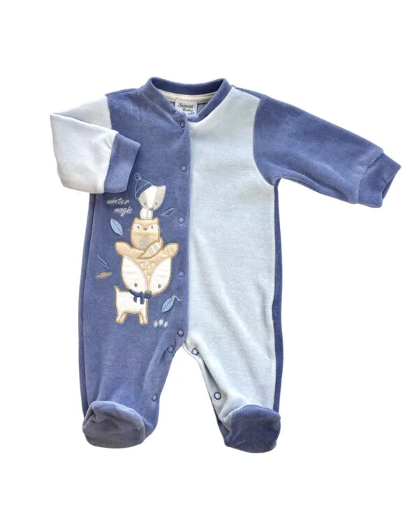 Βρεφικό φορμάκι βελουτέ μπλε-σιέλ Ζωάκια