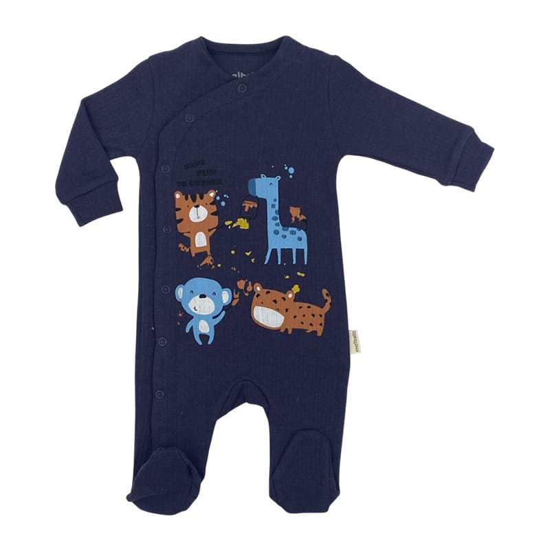 Φορμάκι βρεφικό ολόσωμο μπλε σκούρο με ζωάκια.