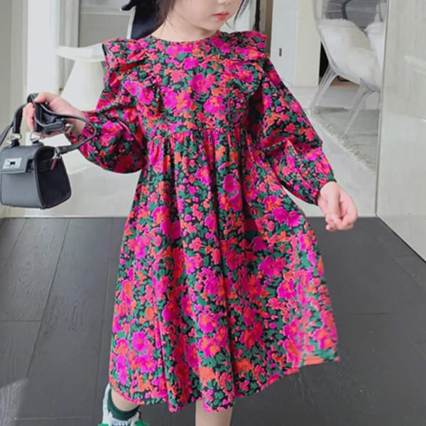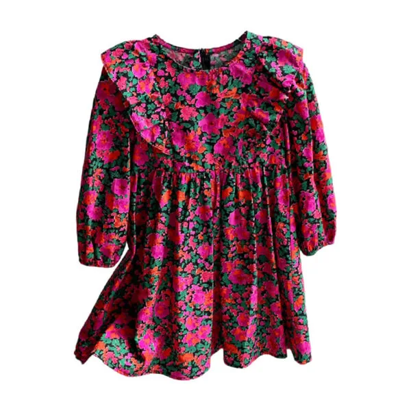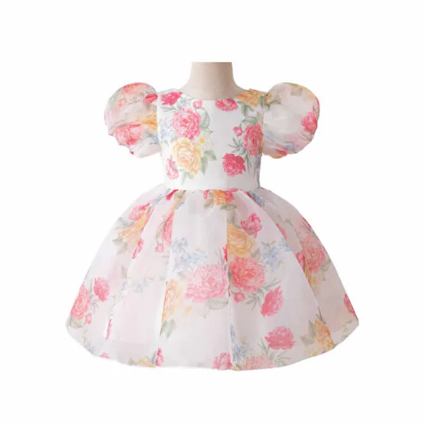 Βρεφικό-παιδικό φόρεμα floral με φουσκωτά μανίκια