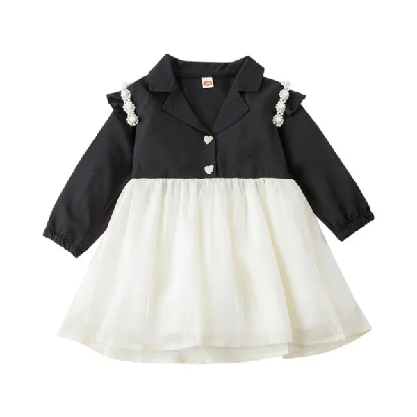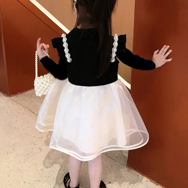 Φόρεμα μαύρο-ζαχαρί με πέρλες στους ώμους