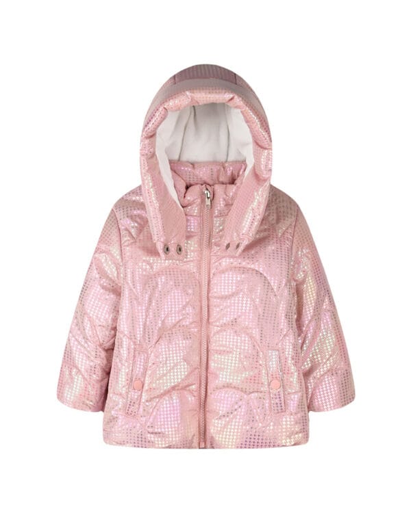 Παιδικό μπουφάν ροζ μεταλιζέ με αποσπώμενη κουκούλα
