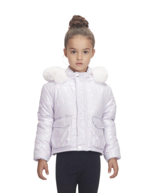Παιδικό μπουφάν λιλά ιριδίζον με εσωτερική γούνα και κουκούλα