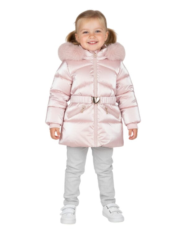 Παιδικό μπουφάν ροζ ιριδίζον pie de poule με γούνινη επένδυση