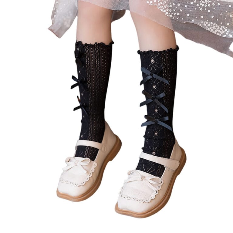 Κάλτσες μαύρες διάτρητες με φιογκάκια
