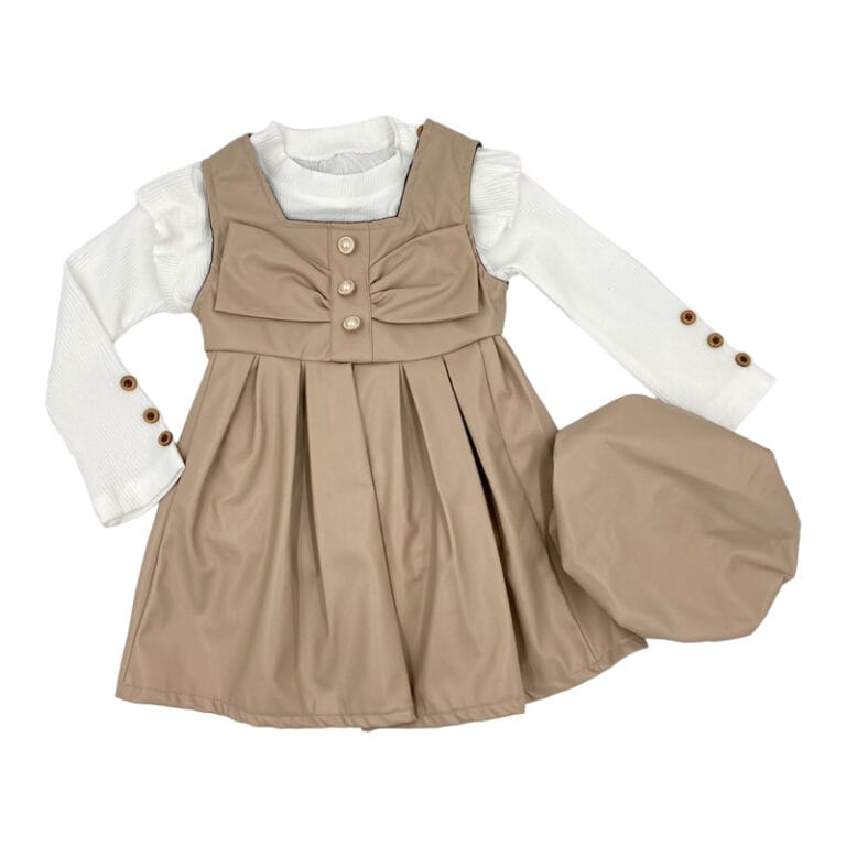 Σετ φόρεμα κρεμ με μπλούζα και καπέλο