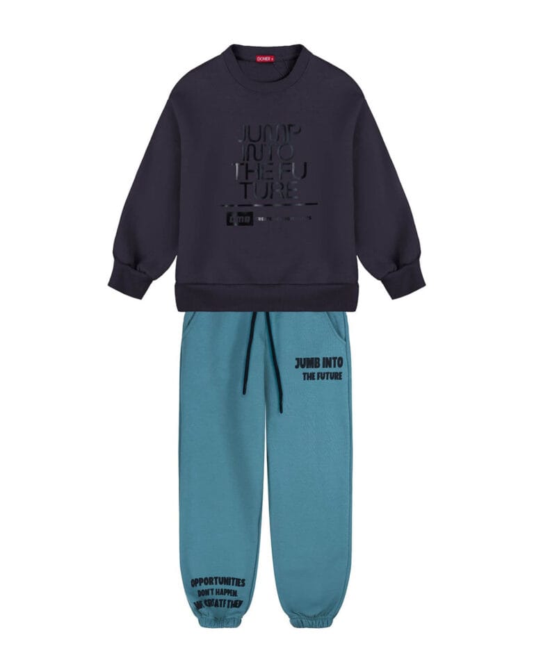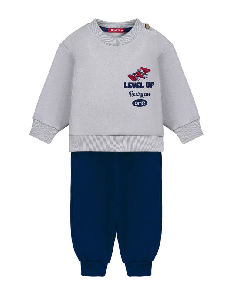 Παιδικό σετ φόρμας fleece ζαχαρί-μαύρο με τύπωμα στην πλάτη