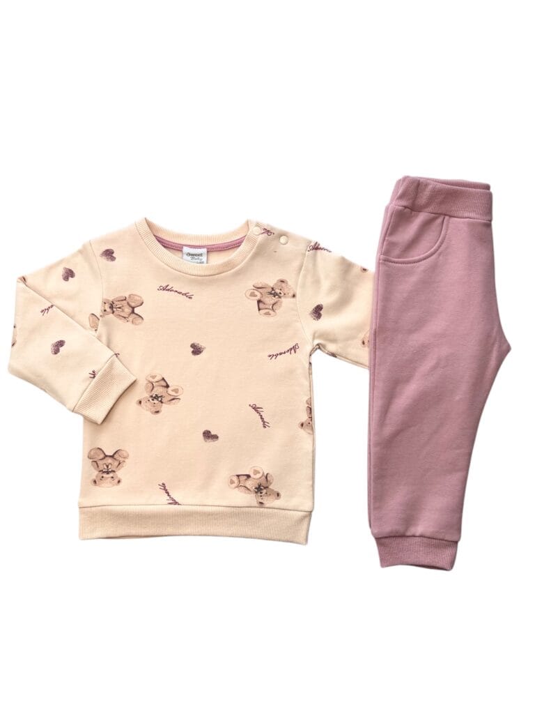 Βρεφικό σετ φόρμας fleece εκρού-σάπιο μήλο Αρκουδάκια